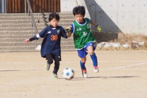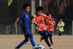 U-8の持ち味である駆け引きしながらボールを動かしてゴールを狙うプレーがたくさん見られました。