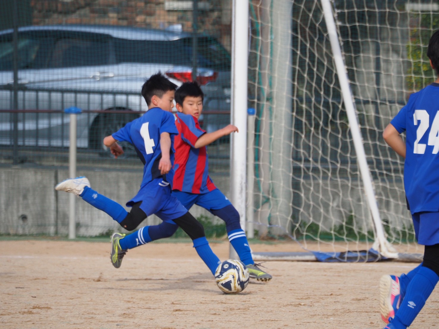 4月開催の右京カップを目指す、太秦きチームは、なかなか得点することができませんでしたが、試合を重ねるごとにゴールチャンスが増えていきます。