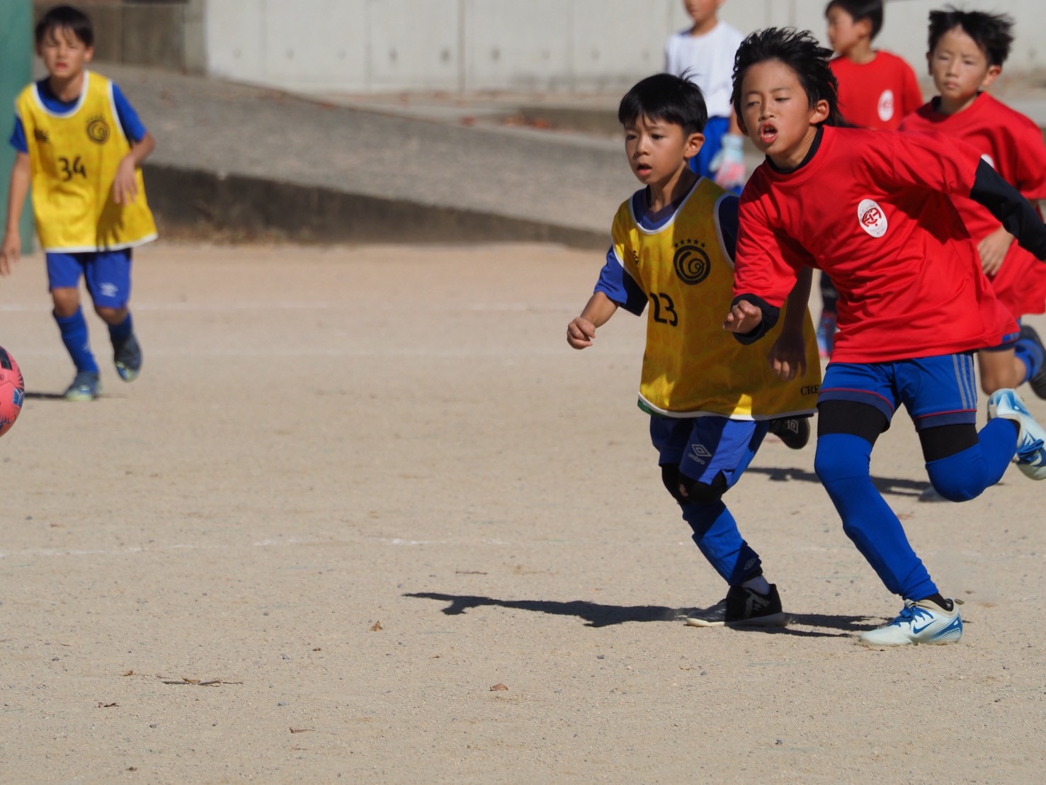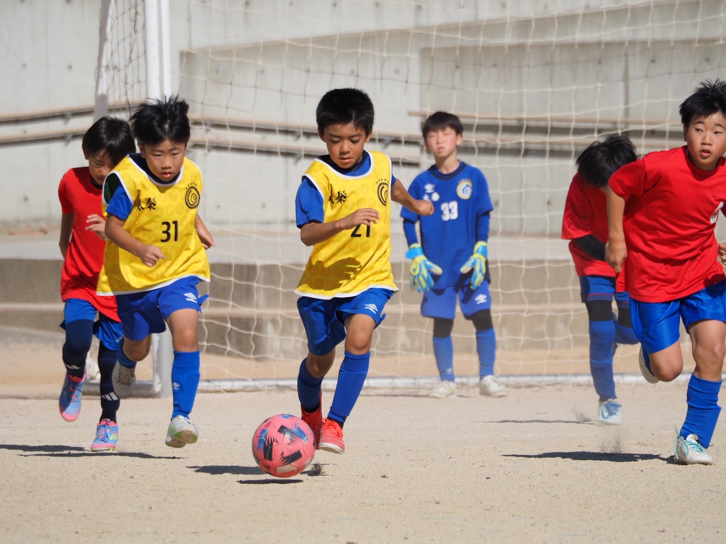 U-9メンバーは、少しおとなしめな感じの時間帯もありましたが、意図のあるプレーが多く見られるようになりました。