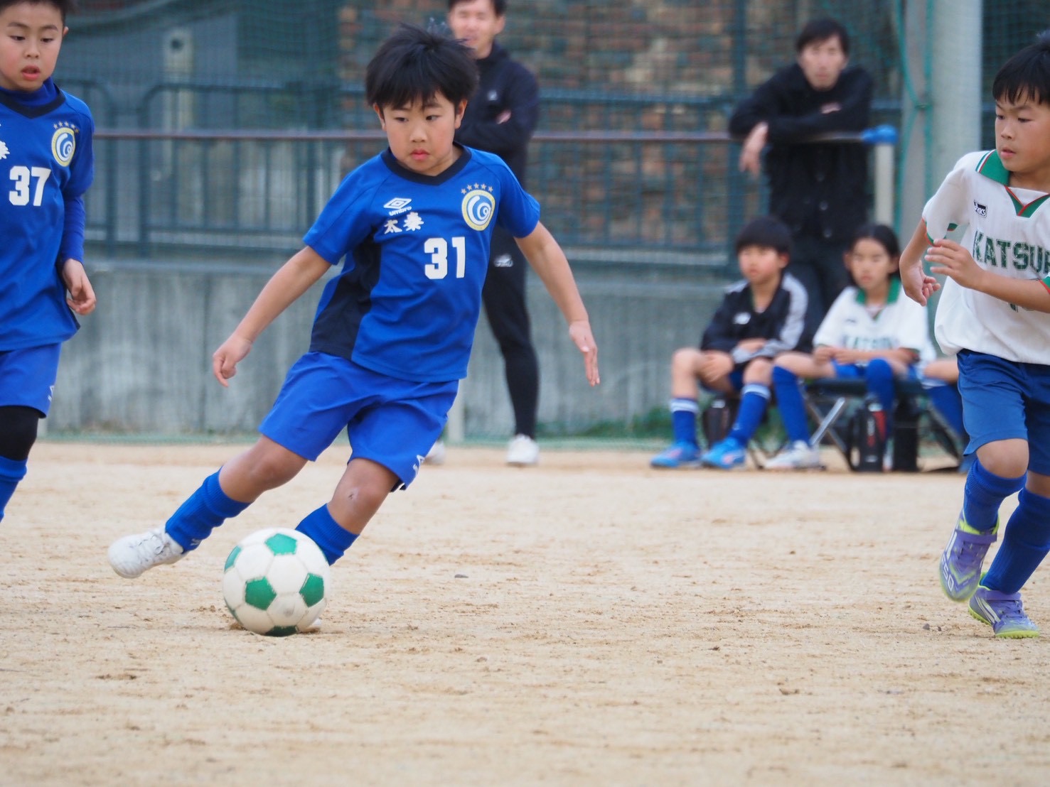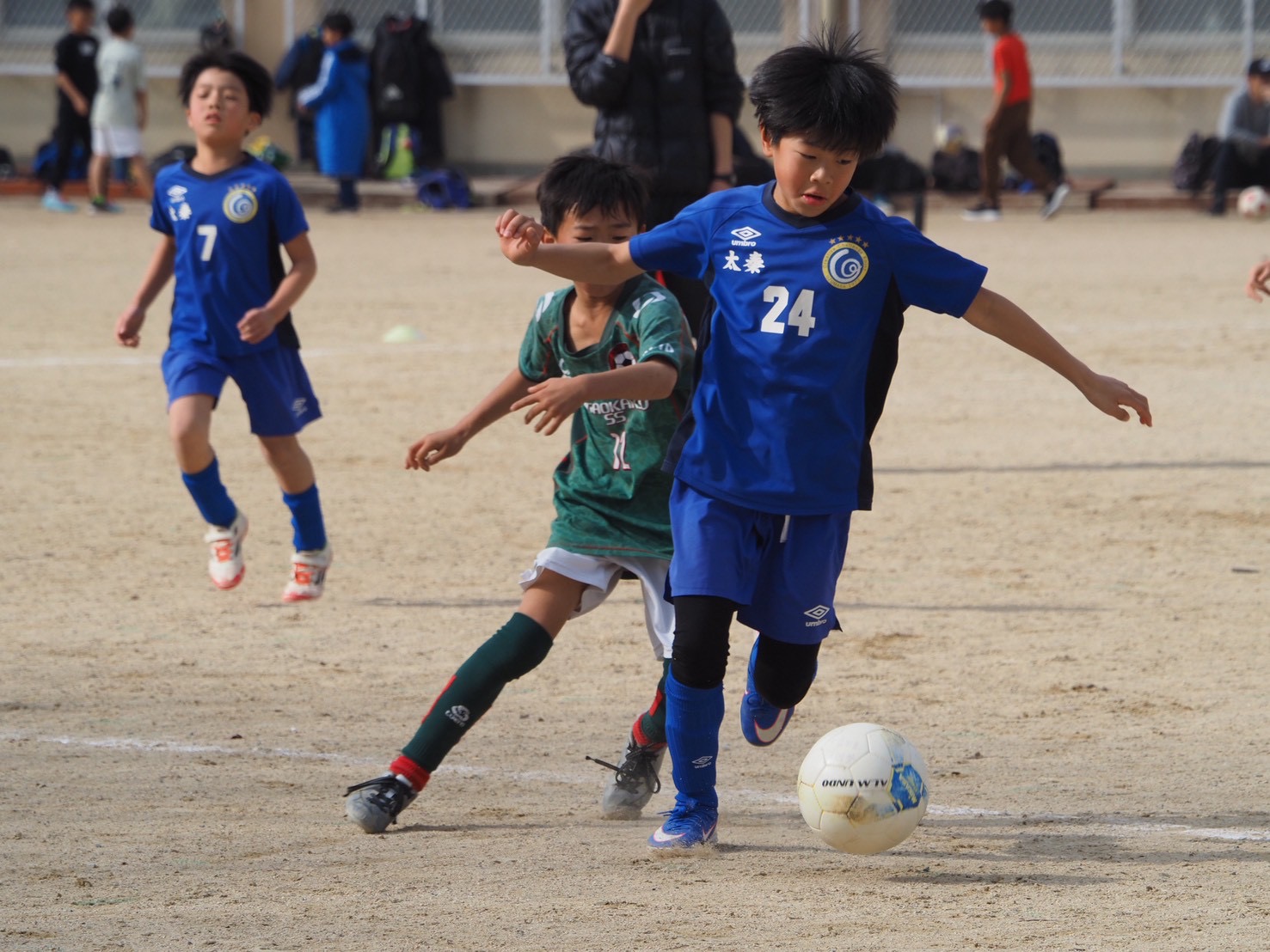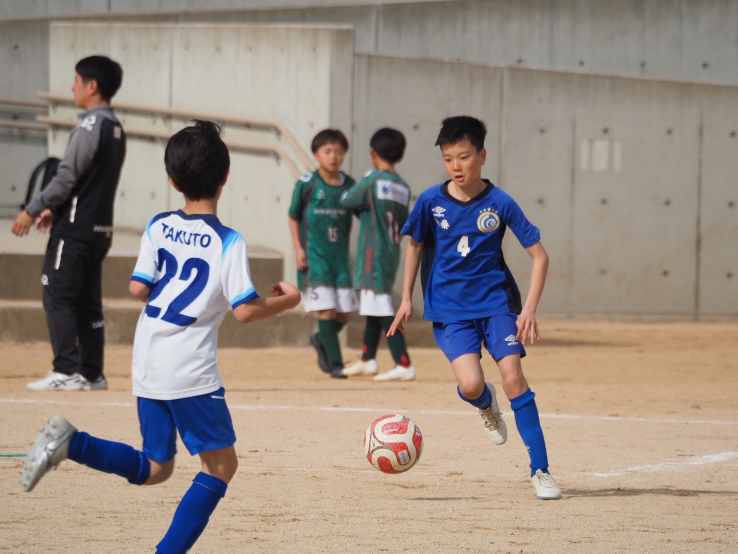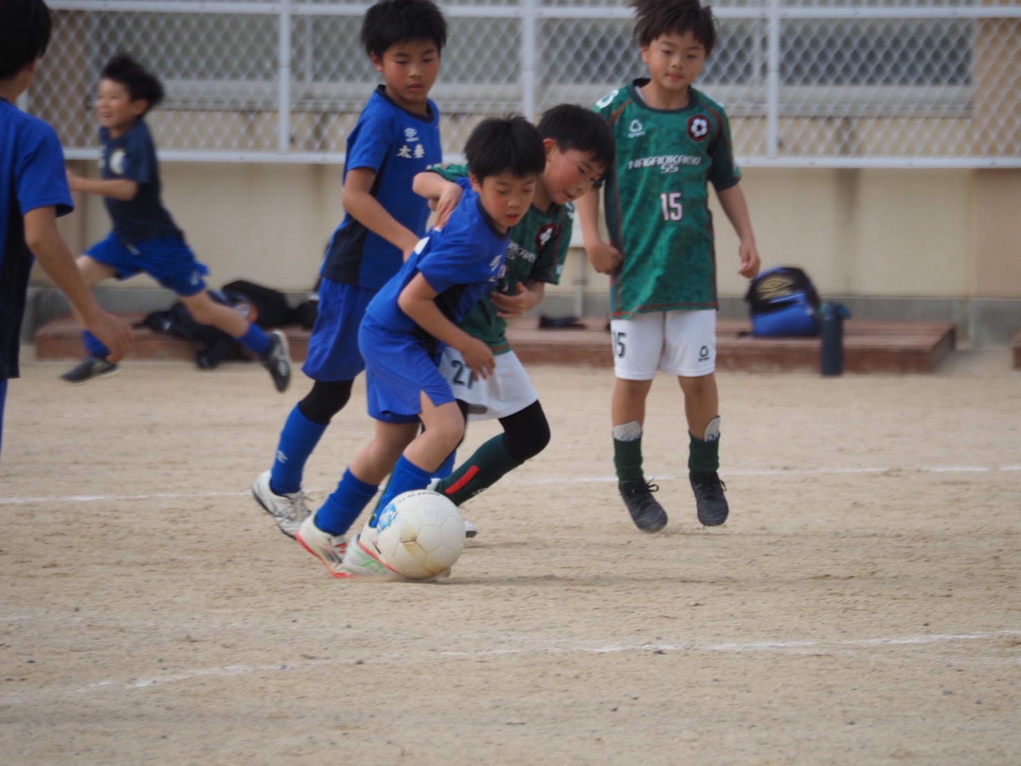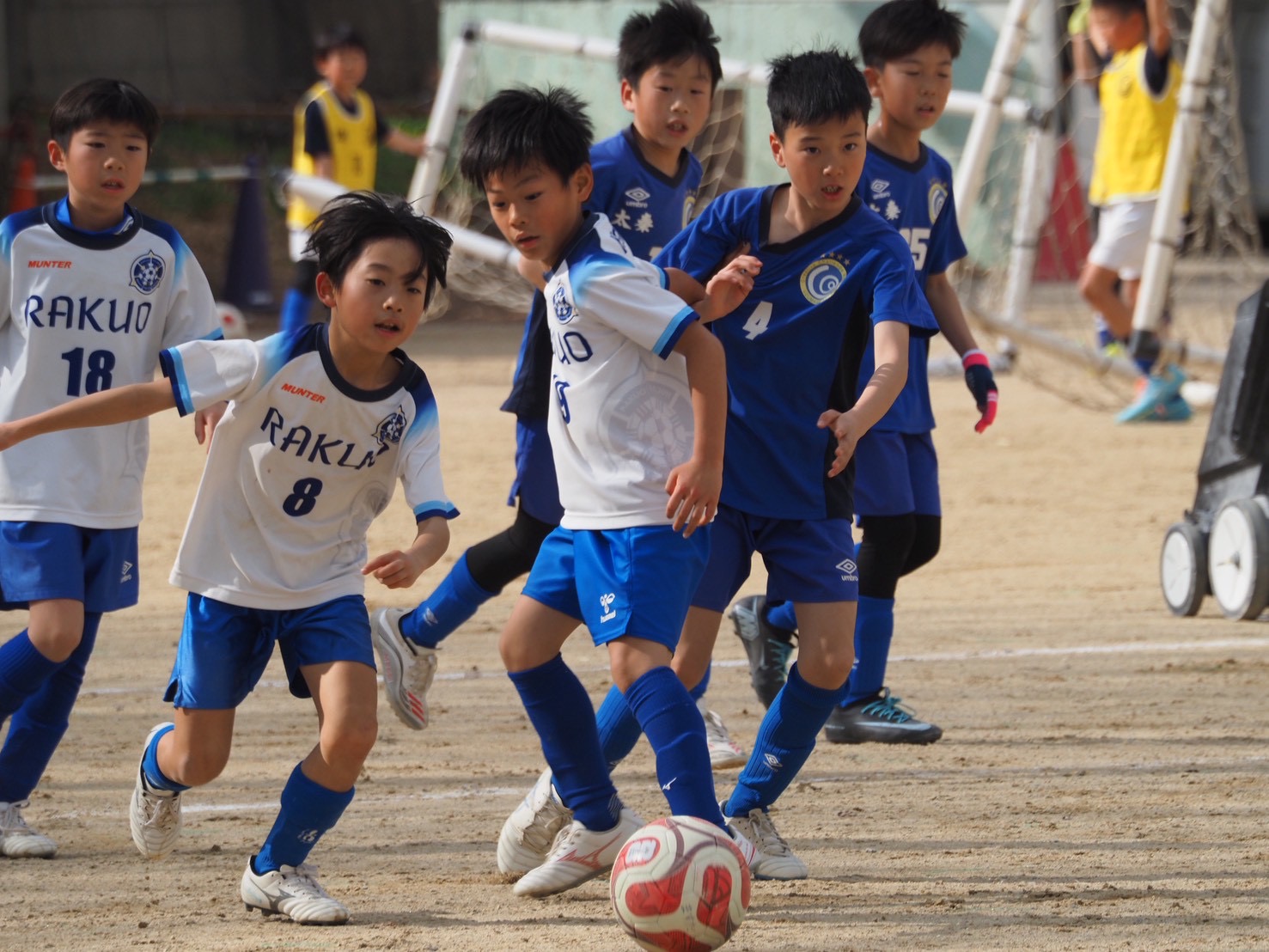 試合は太秦あお、太秦きに分かれて、ハーフピッチ6人制で4試合ずつ行いました。